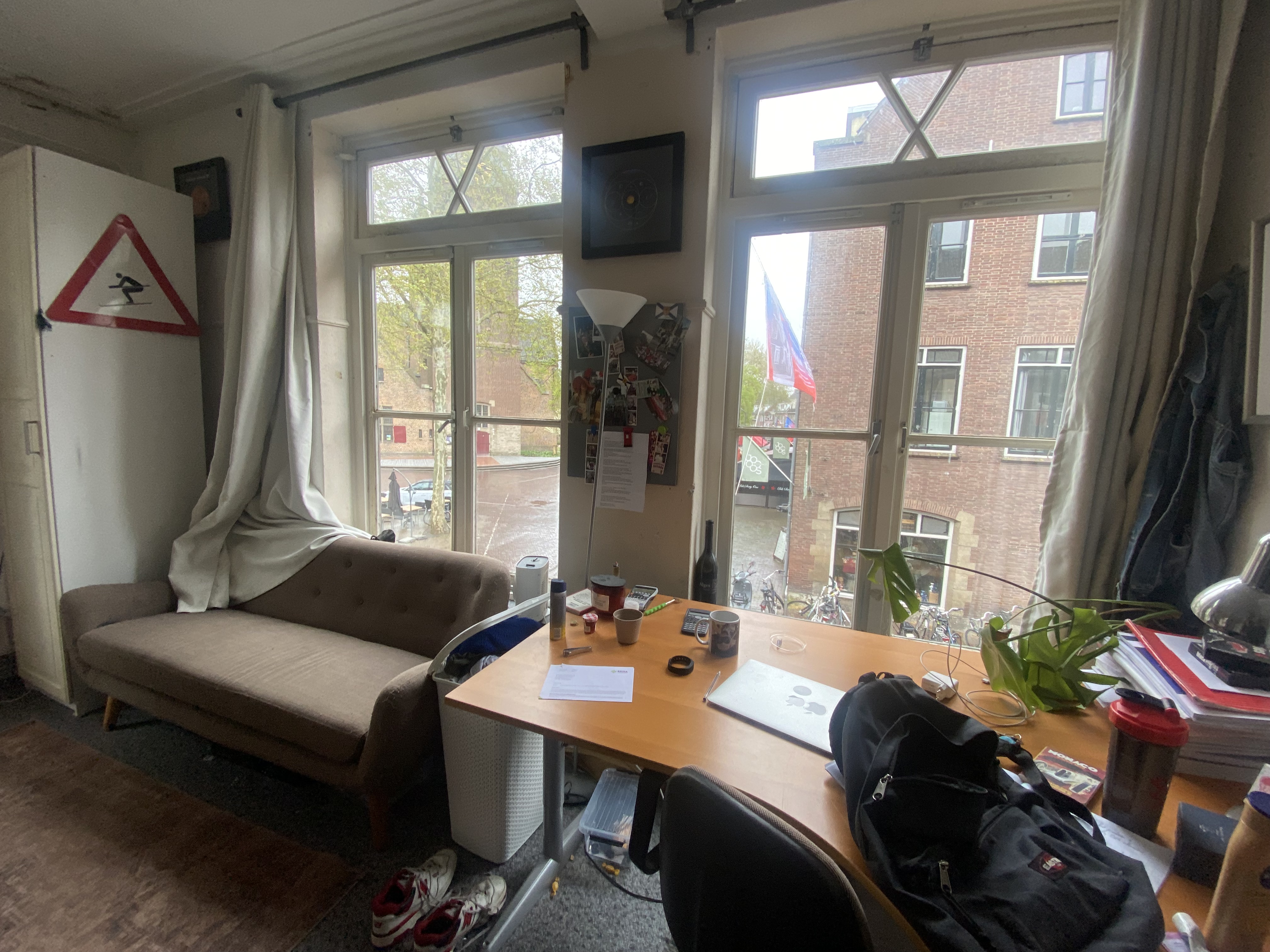 Onze locatie is ideaal, we wonen op slechts 10 minuten fietsen van de universiteit en op kruipafstand van de lokale horeca.