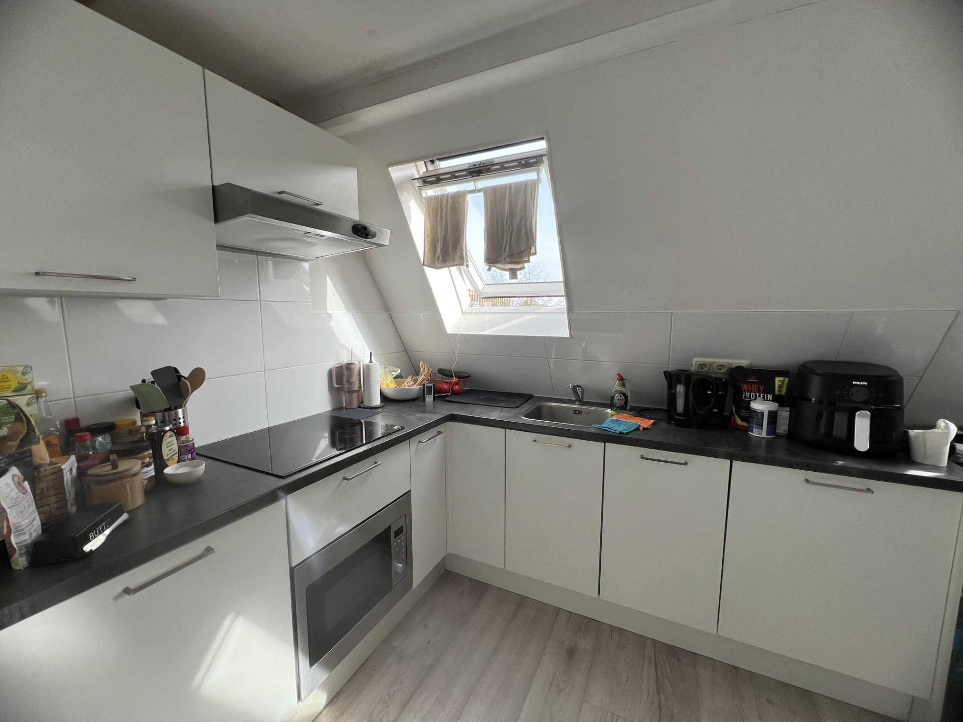 De studio bevindt zich op de derde verdieping van het pand en beschikt over een eigen keuken met onder andere een kookplaat, afzuigkap, spoelbak en kastruimte.