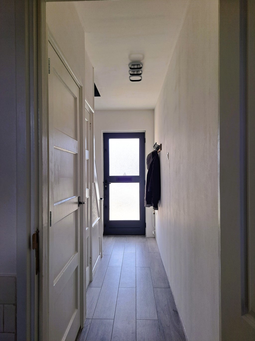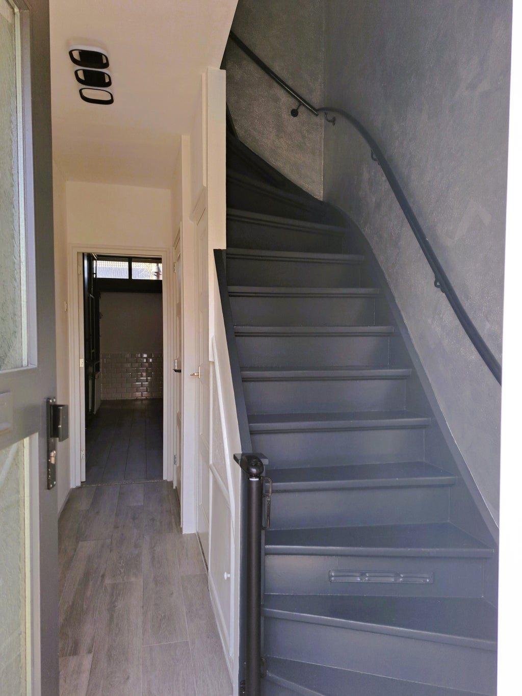 Bij binnenkomst kom je in de hal met meterkast, toilet, kastruimte en trap naar de eerste verdieping.