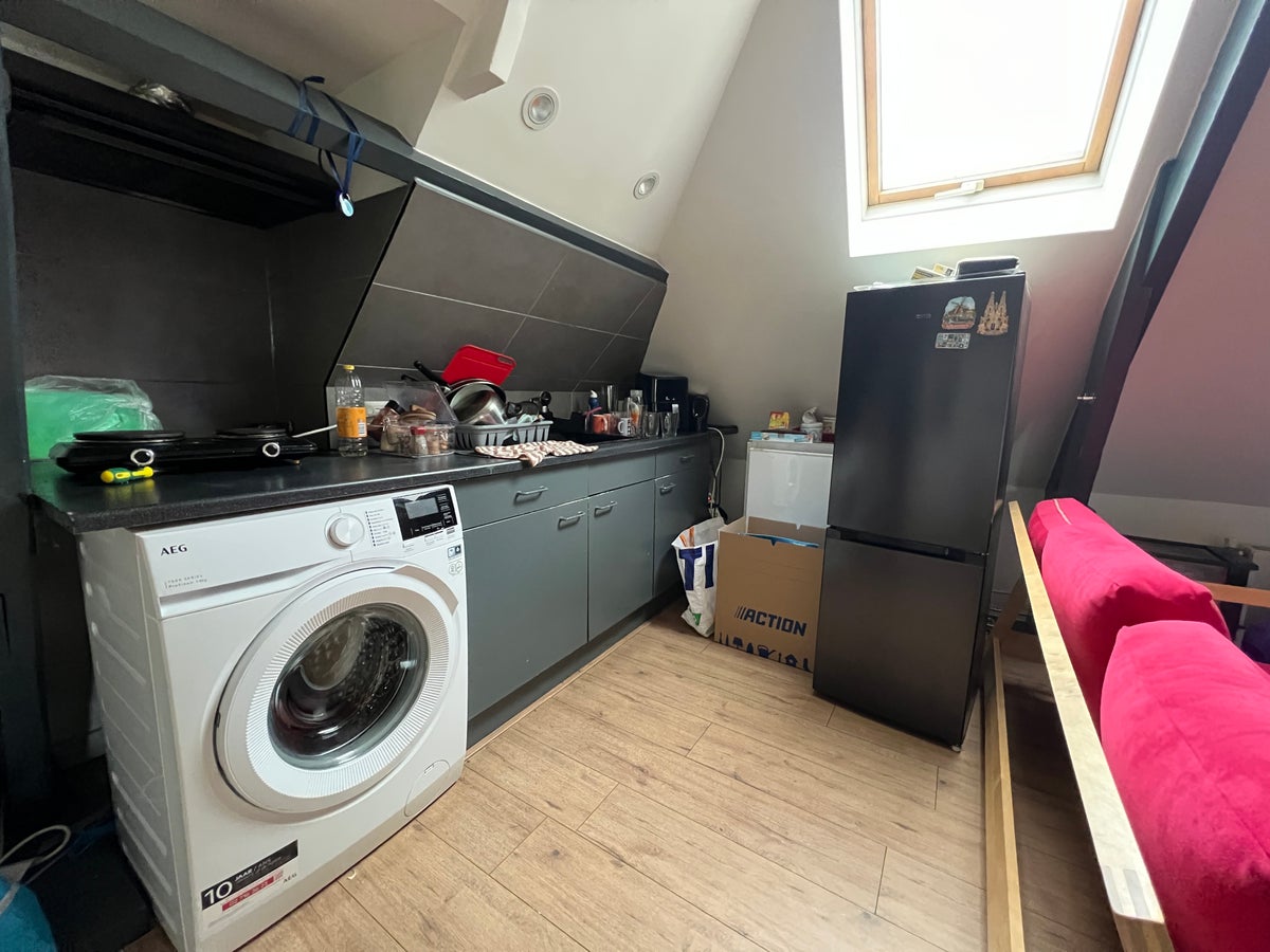 De woning beschikt over een keuken, met wastafel, elektrische kookplaat en afzuigkap. Het appartement beschikt over een doucheruimte, toiletruimte en een slaapkamer.