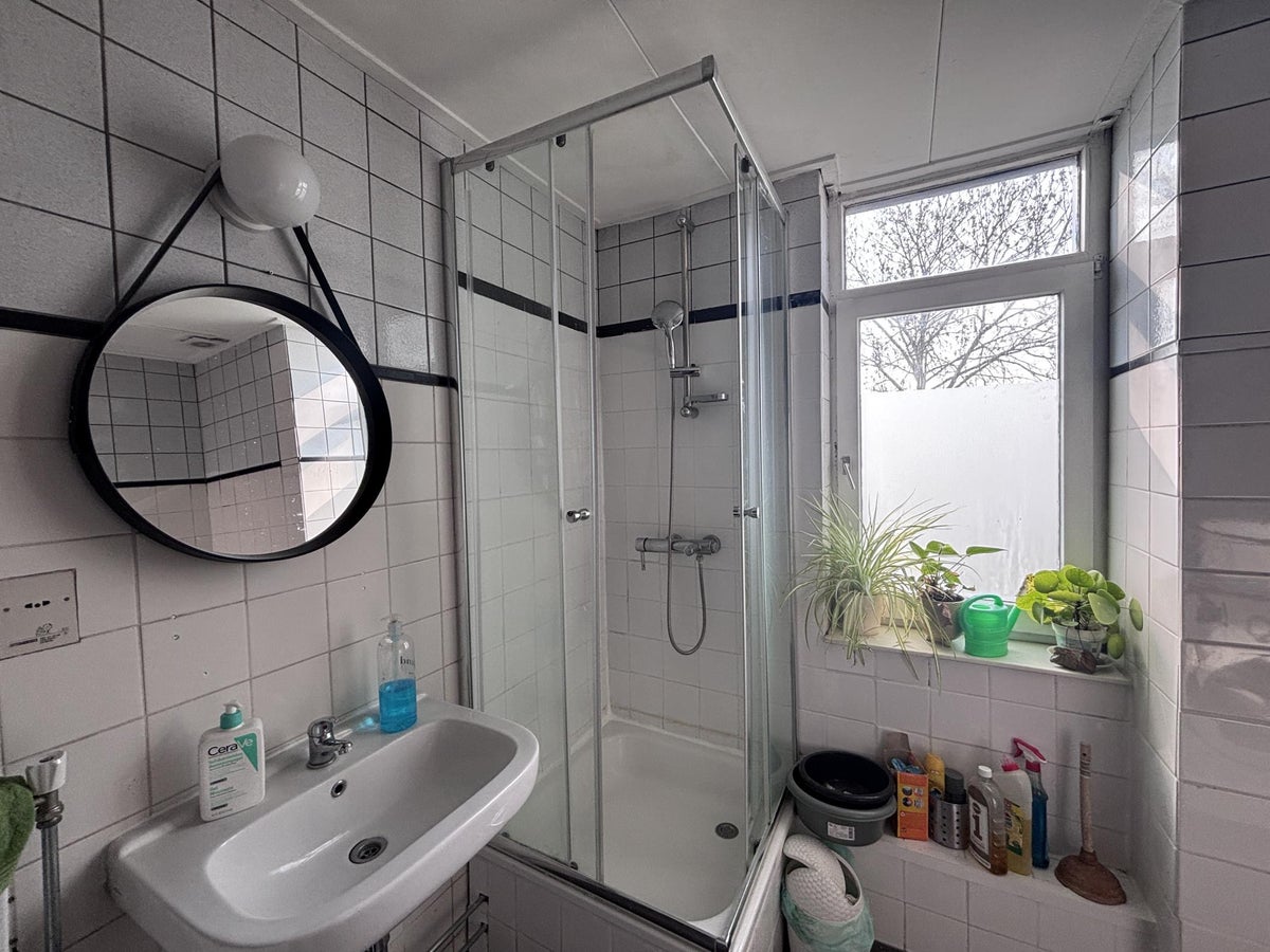 Badkamer voorzien van bad / douche, toilet en wasmachine.