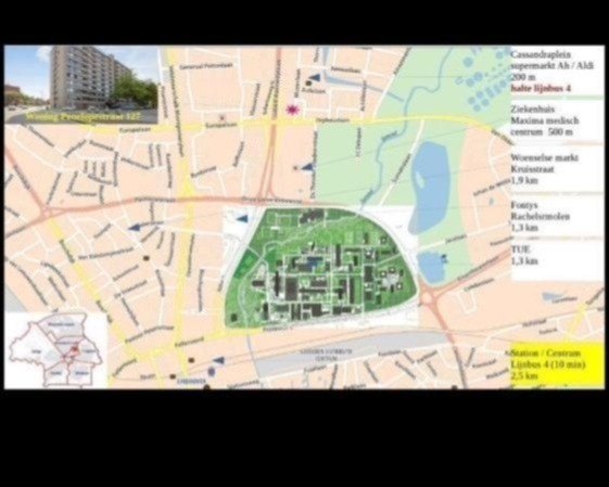 Vlak bij wandelpark “De Karpendonkse Plas”. De Penelopestraat sluit vrijwel direct aan op belangrijke uitvalswegen zoals de John F. Kennedylaan, Ring Eindhoven en A2/A50. Bushaltes voor lijn 3 en 4 (rechtstreeks vanaf Eindhoven CS) zijn op 3 minuten loopafstand (haltes Cassandraplein en Peppelrode).