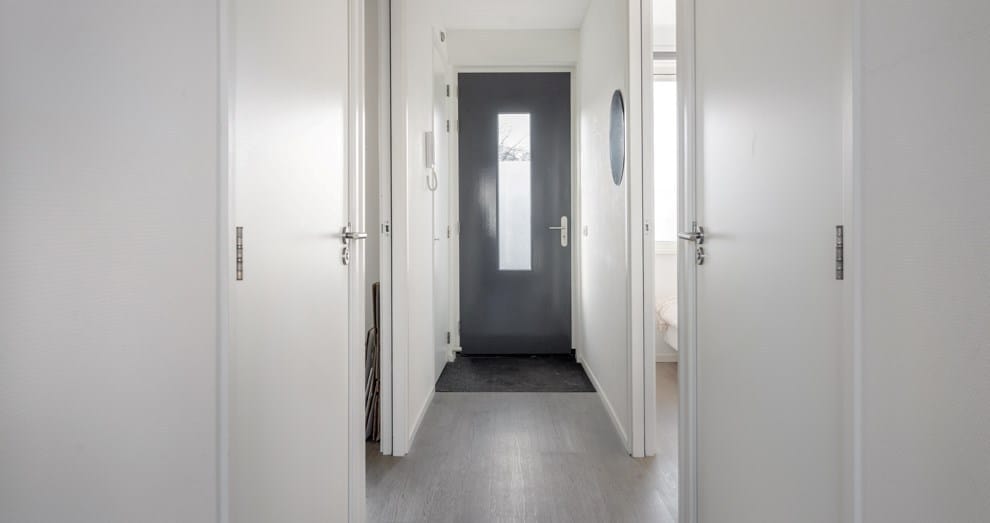 Indeling: entree, hal met toegang tot de twee slaapkamers, toilet, badkamer en woonkamer met open keuken. Deze bevindt zich aan de straatzijde, de ramen geven veel lichtinval en zijn voorzien van lamellen.
