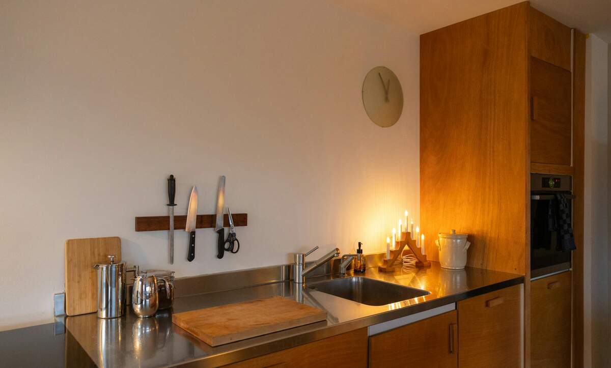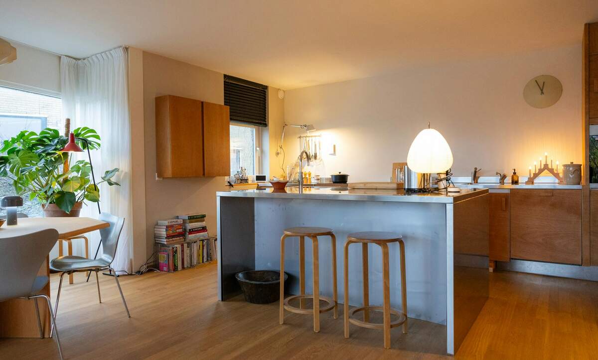 De moderne keuken is volledig uitgerust met inductiekookplaat, geïntegreerde koelkast, Amerikaanse koel-vriescombinatie en Quooker voor direct warm water.