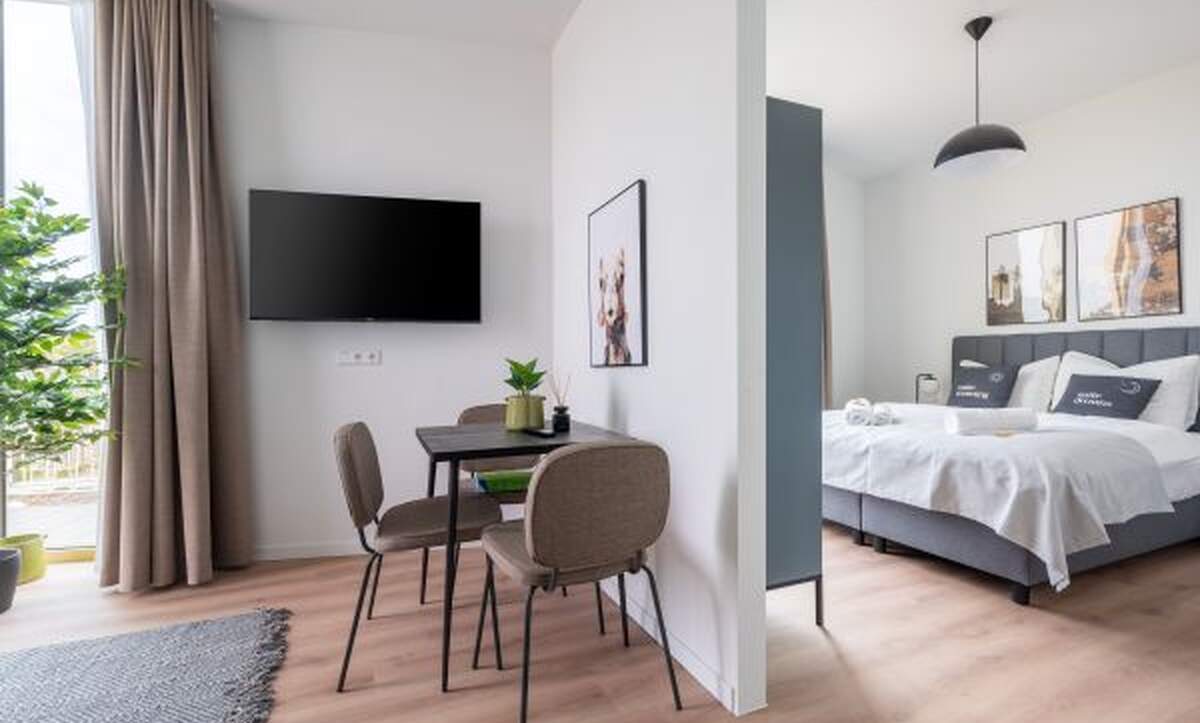 Het appartement beschikt over een volledig uitgeruste keuken, een comfortabel boxspringbed (1,60m) inclusief een moderne smart-tv en een moderne privébadkamer met kamerhoge douche waardoor u zich thuis zult voelen.
