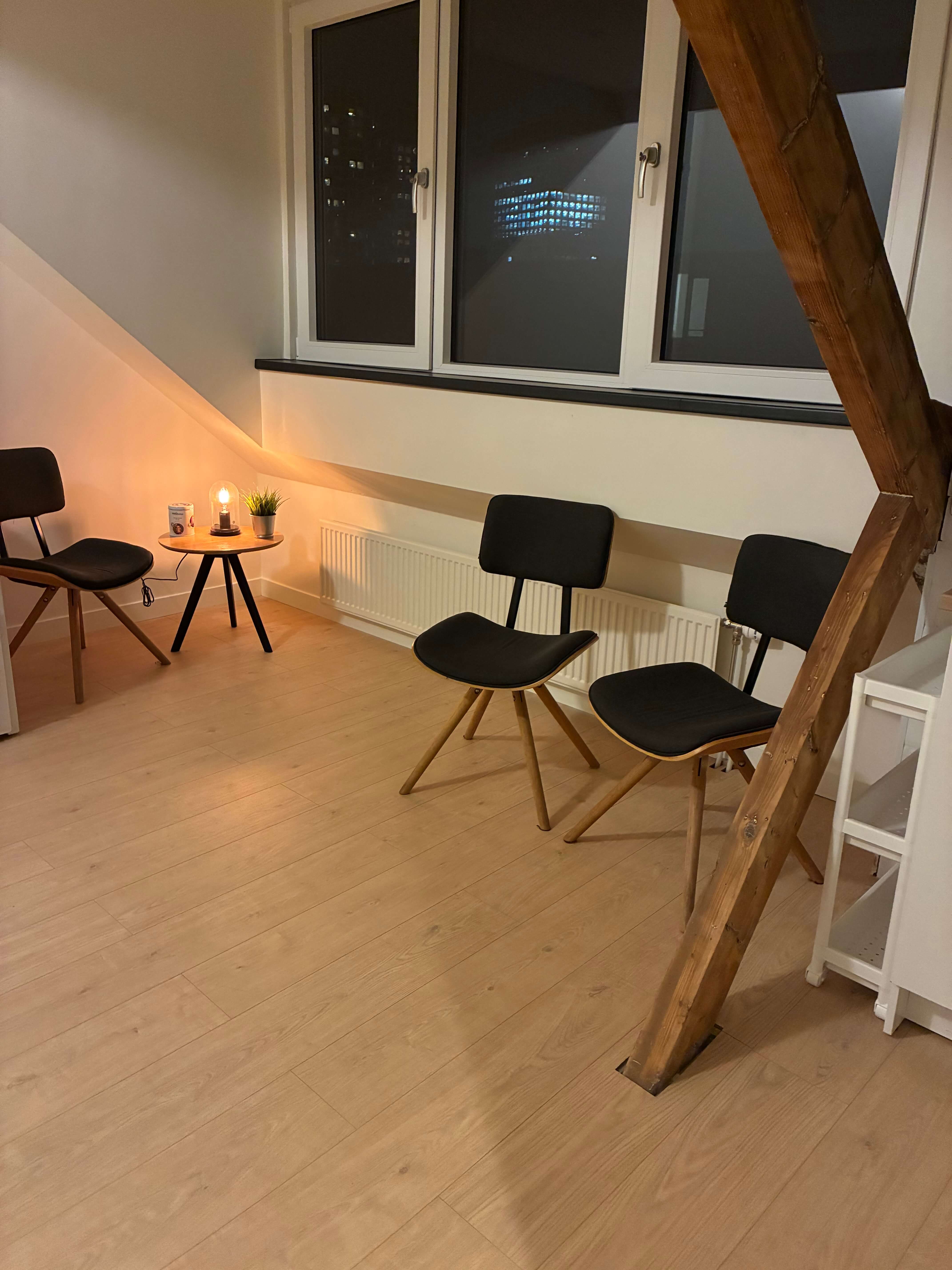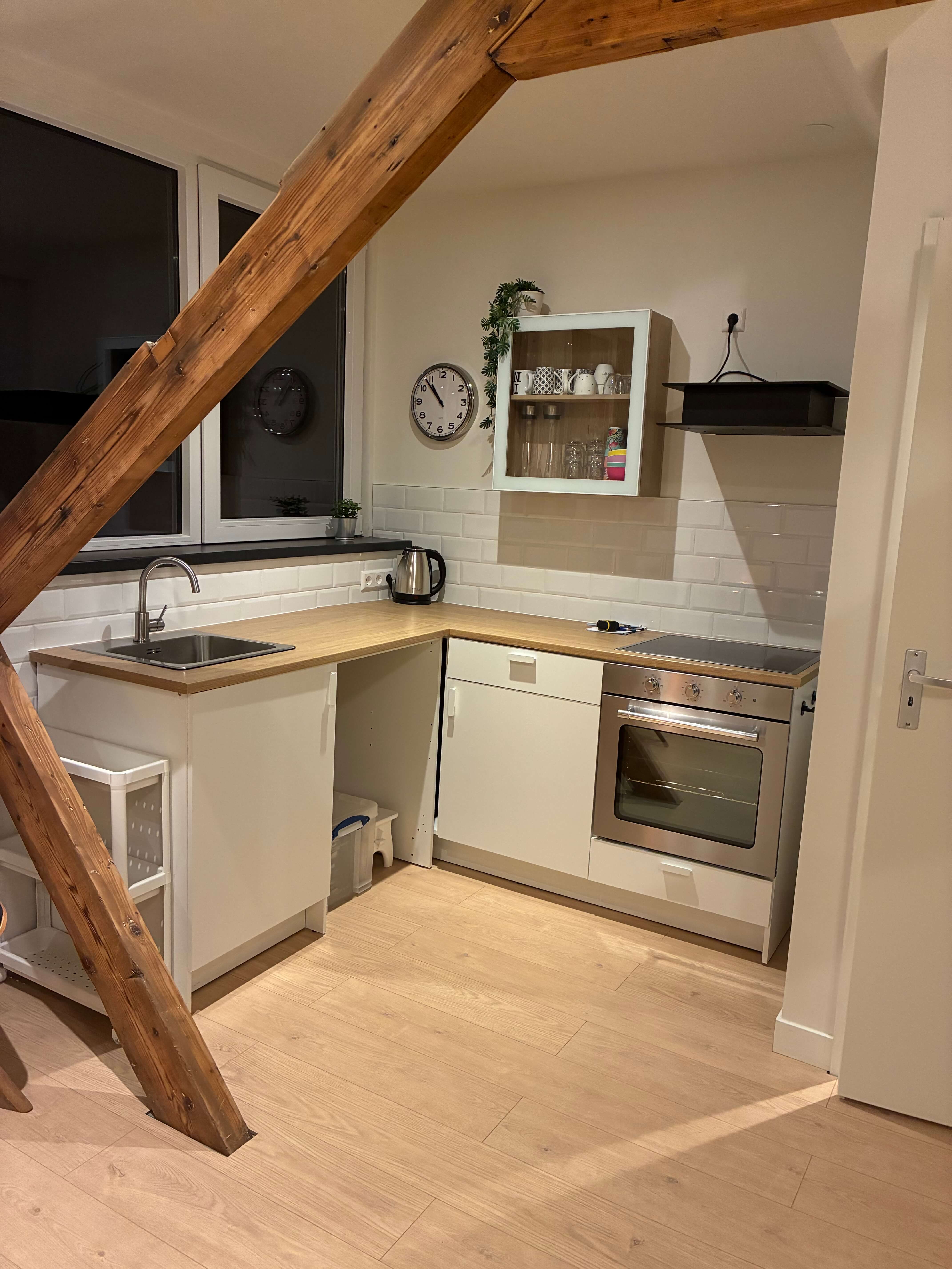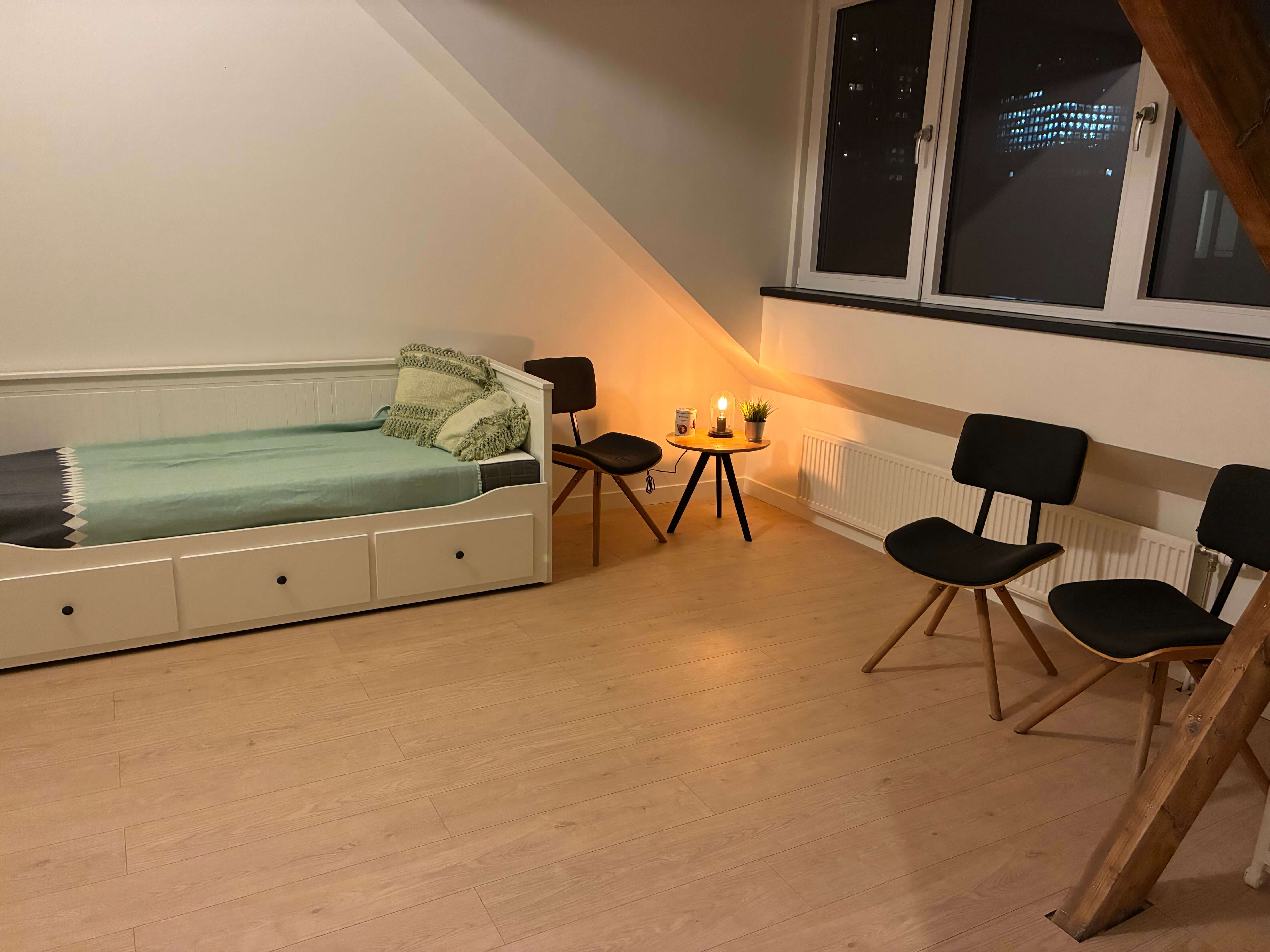 Zolder pas verbouwd en klaar om iemand een plekje te bieden! Mooie kamer met prachtige lichtval en een klein keukentje.
