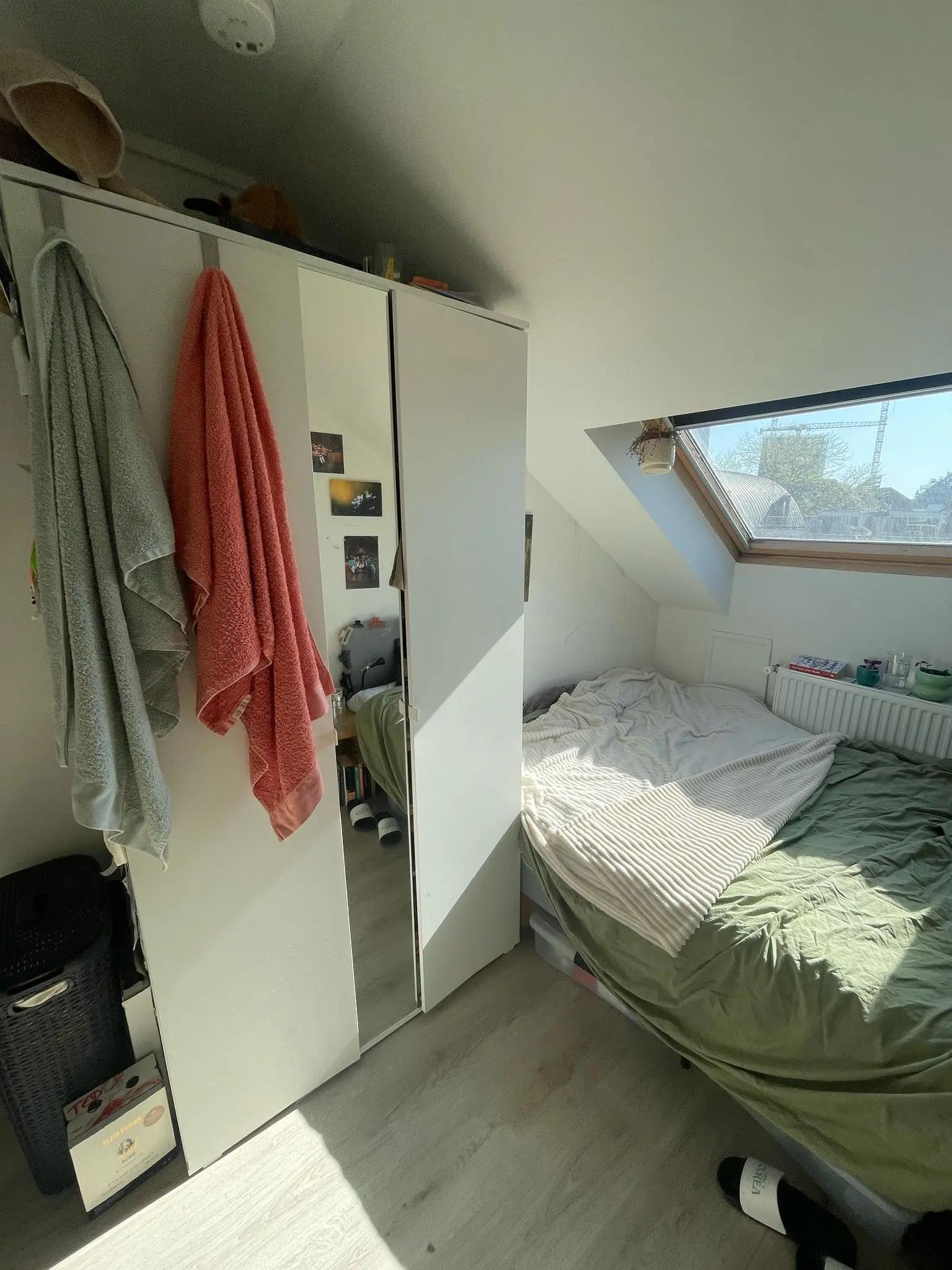 Ons huis heeft een gezellige woonkeuken, een grote badkamer (met bad!) en een heerlijk dakterras waar wij vaak met elkaar te vinden zijn. Binnen 5 minuutjes fietsen ben je op de TU/e en de Fontys en Stratum is op kruipafstand :).