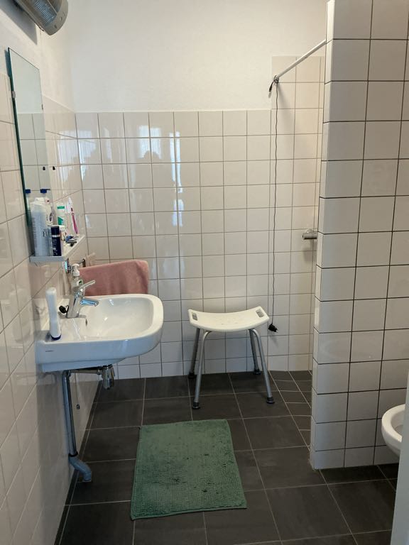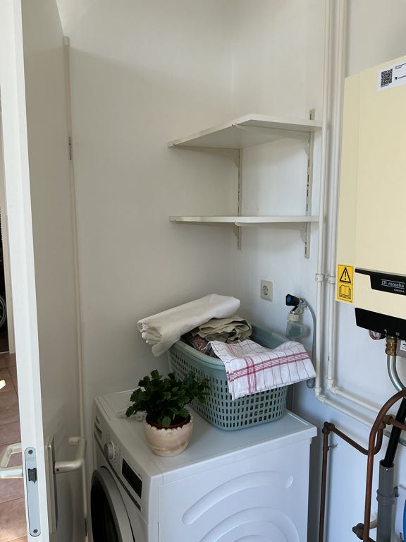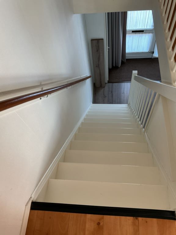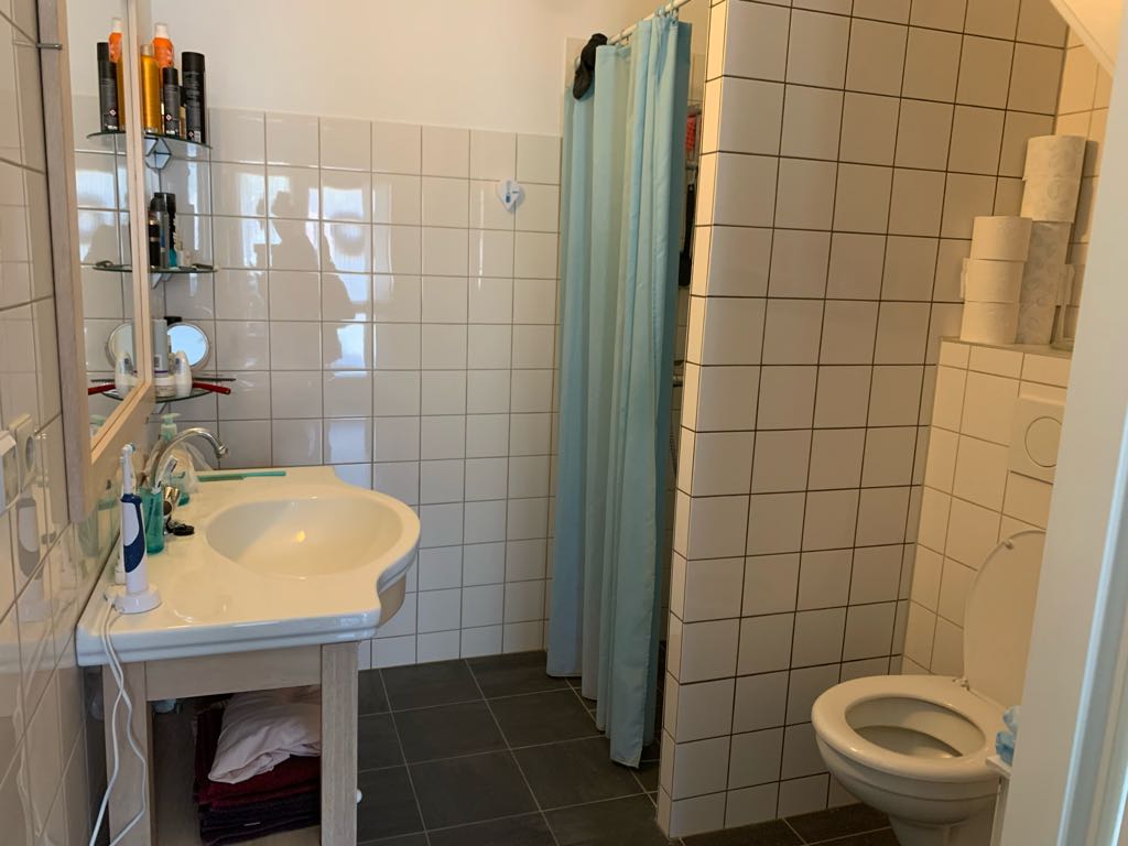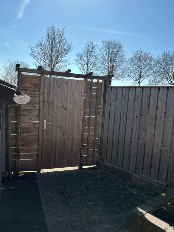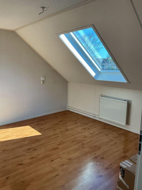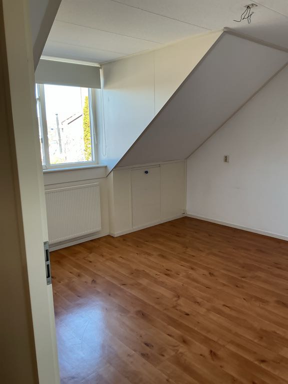 U kunt deze ruimte ook anders gebruiken als verlenging van de woonkamer. De badkamer is met een douchehoek, toilet en wastafel.Achter de keuken bevindt zich een keurige inpandige berging met opstelplaats voor de wasmachine en extra bergruimte. Vanuit hier heeft u ook toegang tot de tuin.De woning is voorzien van gas om te koken. Wanneer u liever elektrisch wilt koken kunnen wij een elektrische kookgroep voor u aan laten brengen tegen een verhoging van €3,50 per maand.Eerste verdieping Via een vaste trap bereikt u de eerste verdieping.