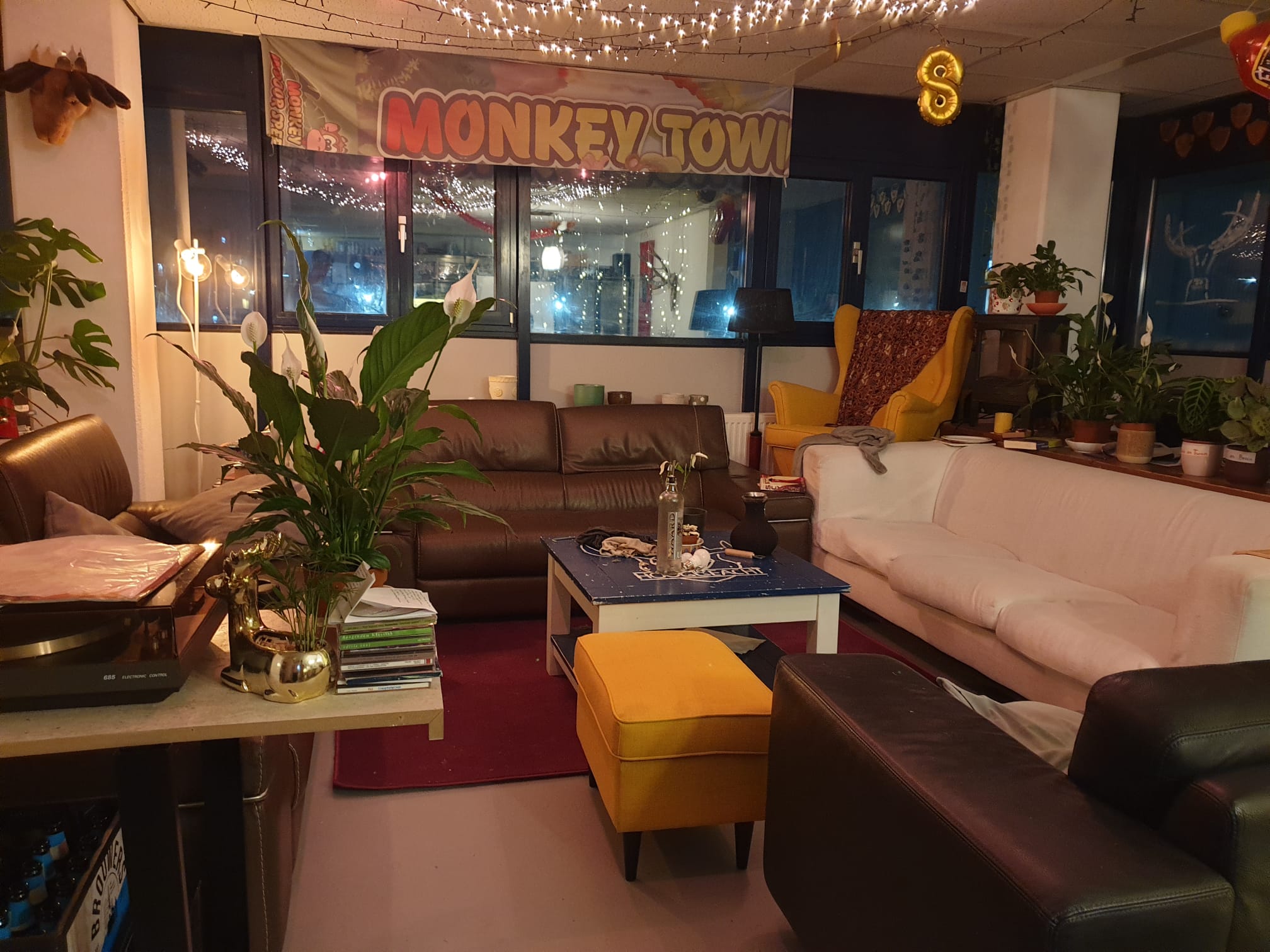 Er wordt bijna elke avond samen gegeten en er zijn altijd wel mensen thuis om mee te chillen, spelletjes te spelen, of een domme film of serie mee te kijken. De ruime keuken heeft van vaatwasser tot koffiezetapparaat alles wat je hartje begeert. Ook we hebben nog eens een washok met droger. De kamer zelf is 12m² groot.
