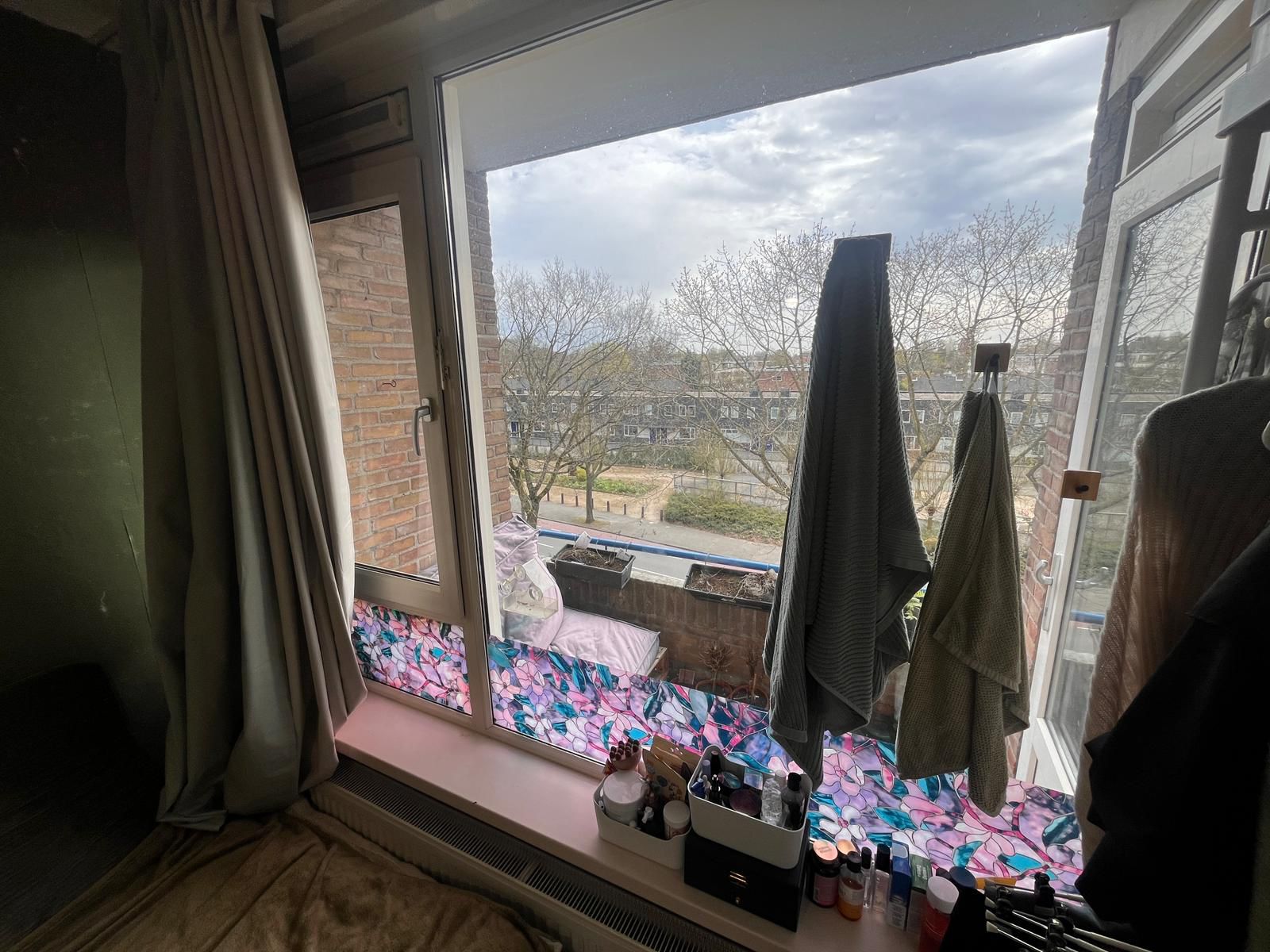 Het appartement is totaal 76m2 en de vrije slaapkamer 11m2. De slaapkamer zit aan de voorzijde van het appartement, krijgt veel daglicht en het balkon ligt er tegenaan. Twee kleine winkelcentra liggen op nog geen 5 min loopafstand, de bushalte ligt om de hoek en in 10 min fietsen ben je in de binnenstad!
