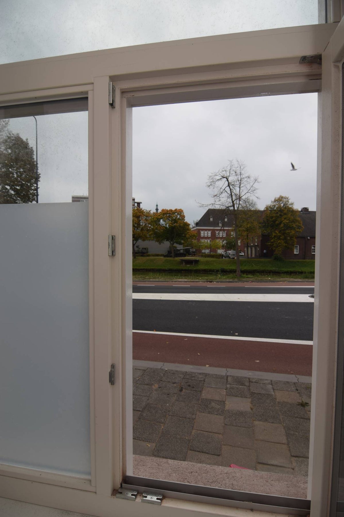Lichte studentenkamer met een erker en uitzicht over de singel.