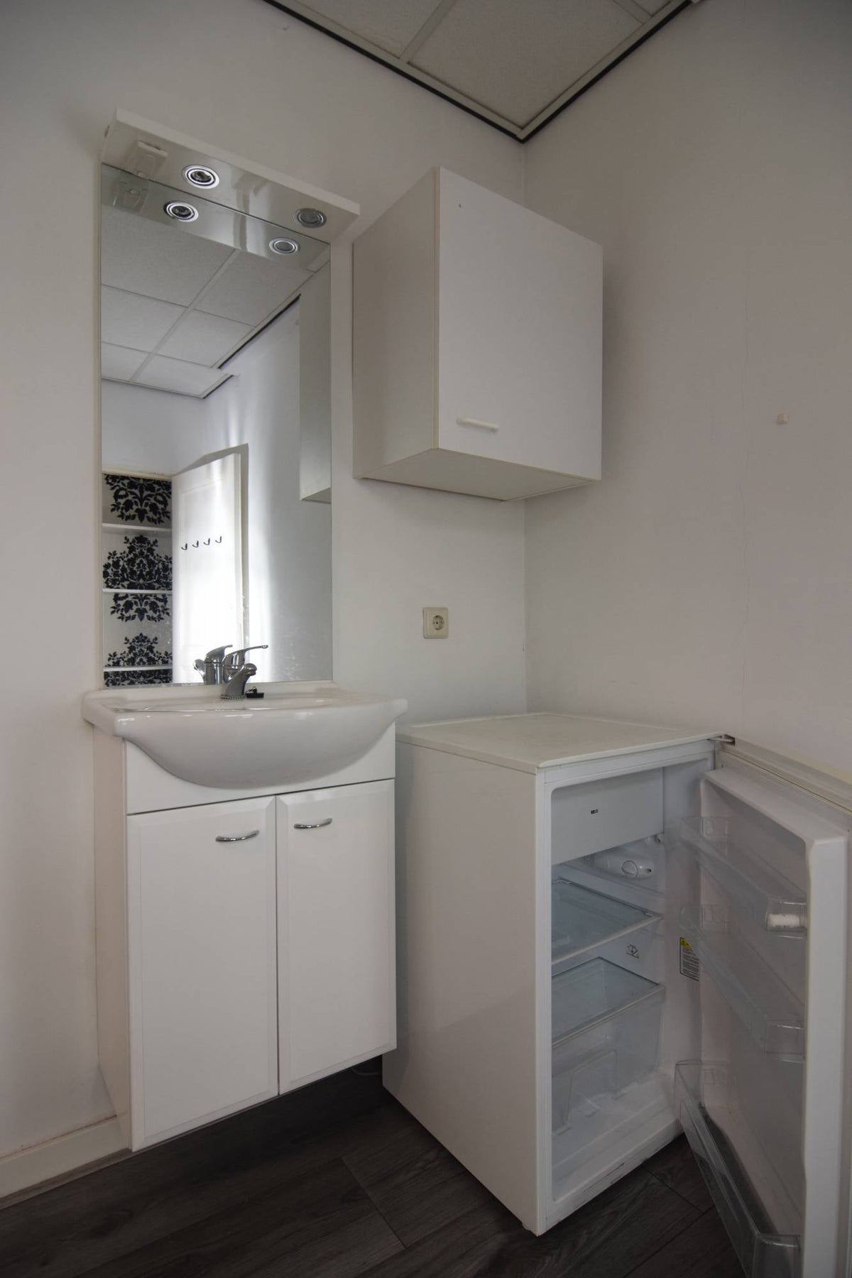 Wat meteen opvalt zijn de grote ramen en de erker waardoor je veel lichtinval in de kamer hebt. De kamer heeft een eigen koel/vriescombinatie, wastafel en de kamer heeft nette, afgewerkte muren en een laminaatvloer. Je kunt gezamenlijk met de andere bewoners gebruik maken van de keuken, de douches en van de aparte toiletten. Dit geldt ook voor de wasmachine en de droger.