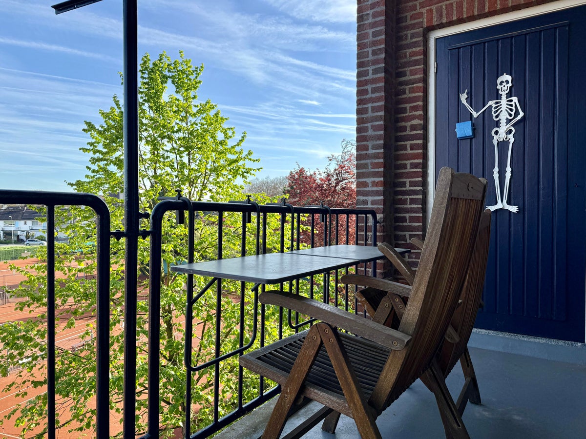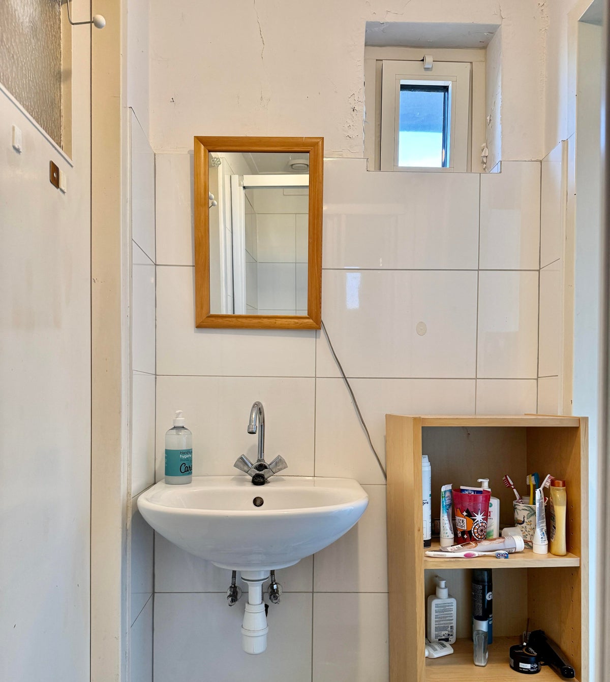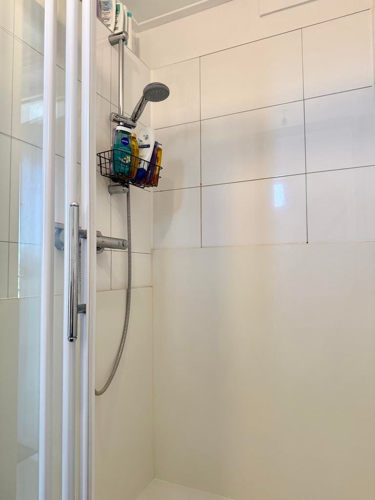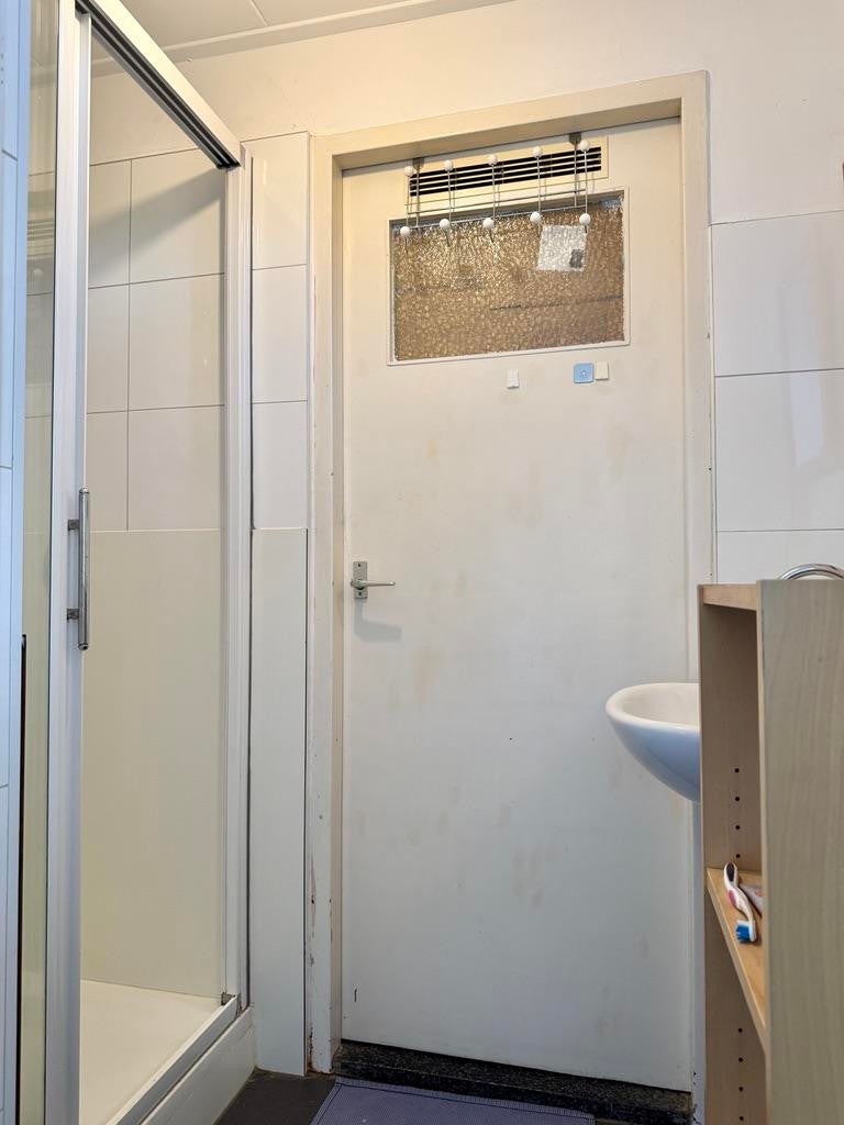 De kamer bevindt zich aan de achterzijde van het appartement en heeft directe toegang tot het gezamenlijke balkon. De badkamer is uitgerust met een douche en wastafel.