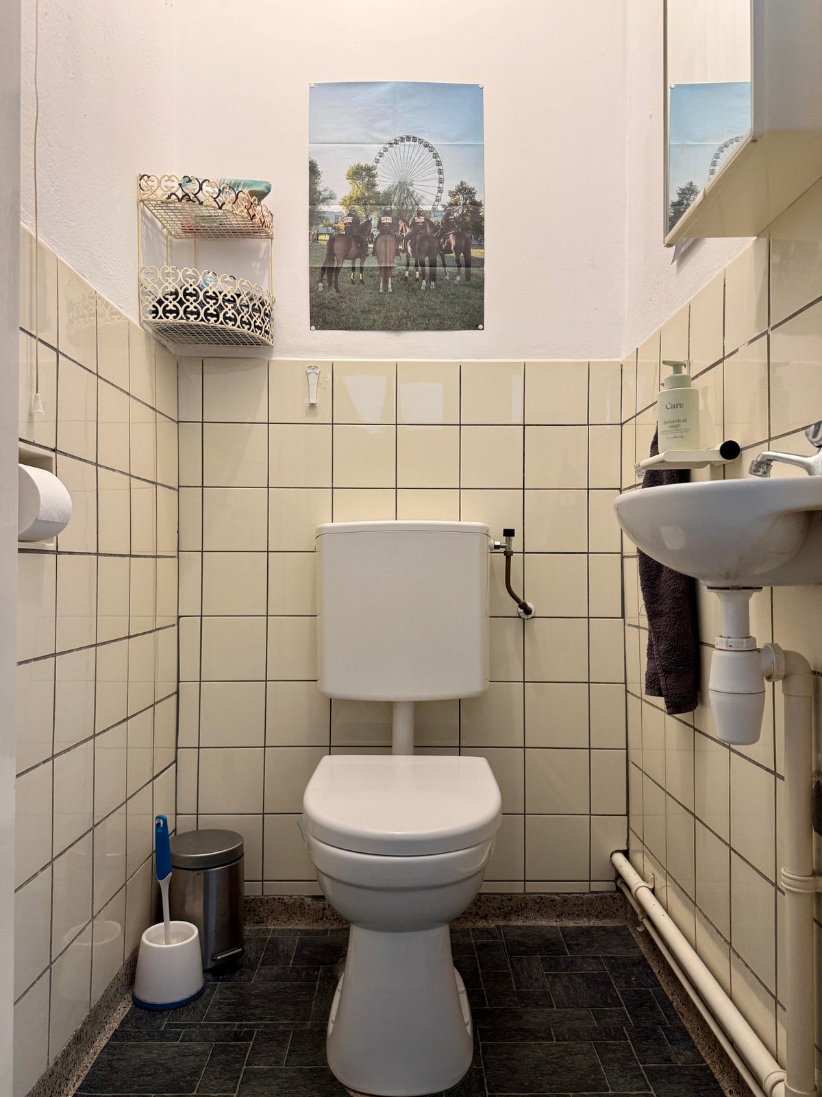 Het toilet is separaat gelegen in de hal. De keuken is voorzien van een gaskookplaat, koel-vriescombinatie en wasmachine. Vanuit de keuken is tevens het balkon bereikbaar. Daarnaast beschikt het appartement over een privéberging in de kelder.