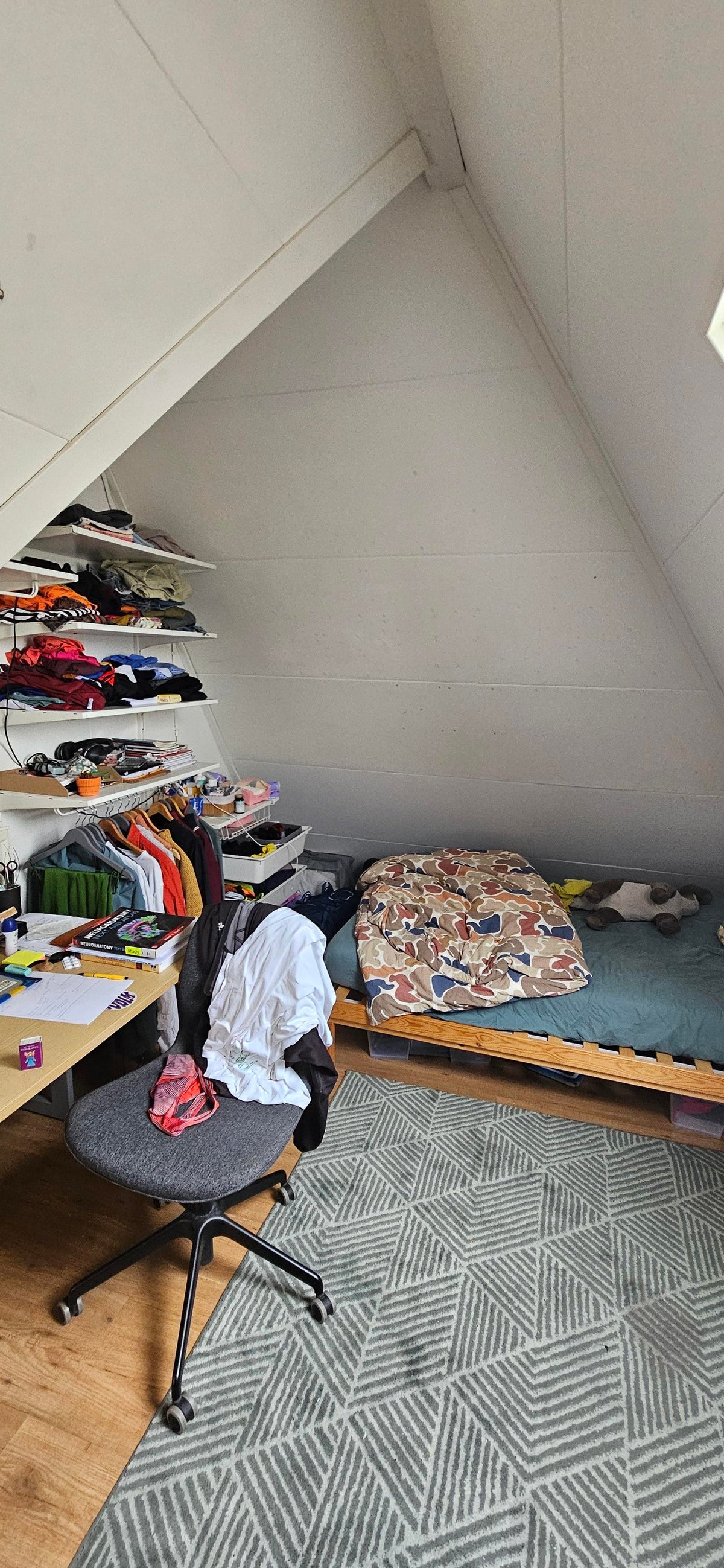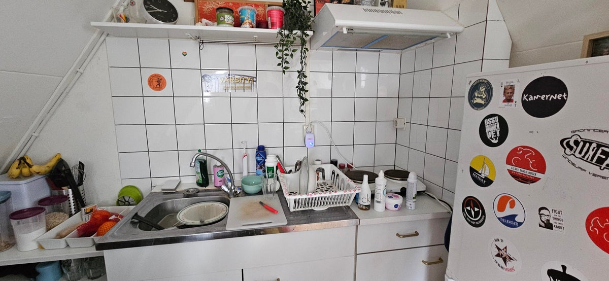 De badkamer en wc deel je met 5 huisgenoten. Er is zowel een dakterras en een ruim balkon aan de achterzijde van het huis.