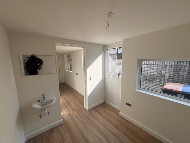 De semi-studio bevindt zicht op de begane grond aan de achterkant van het pand de studio is 13,6 m2 en beschikt over een wasbak en badkamer uitgerust met douche.