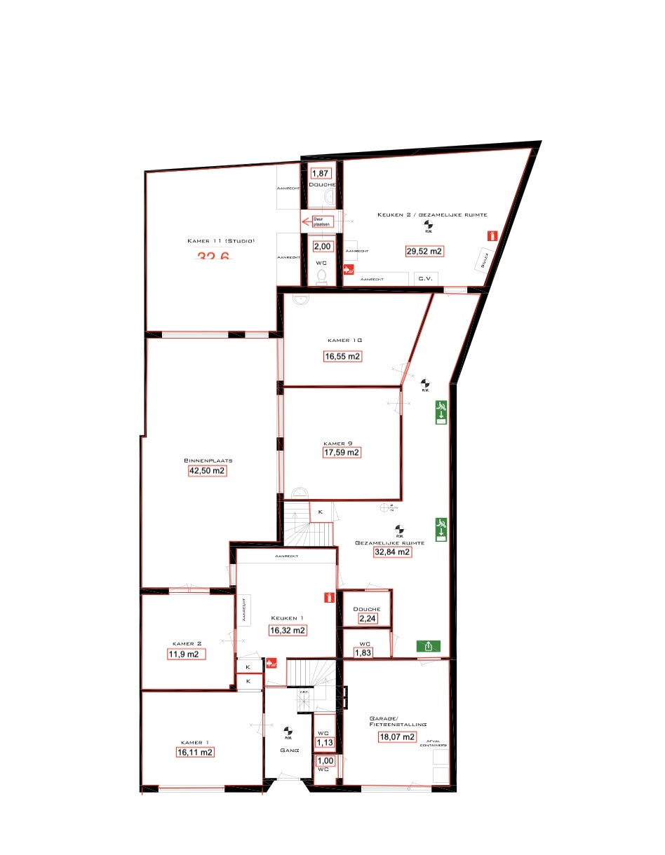 De kamer biedt circa 16 m² woonoppervlak. Dankzij de grote ramen is er veel natuurlijk licht aanwezig. De kamer is ideaal om te studeren en comfortabel te wonen.