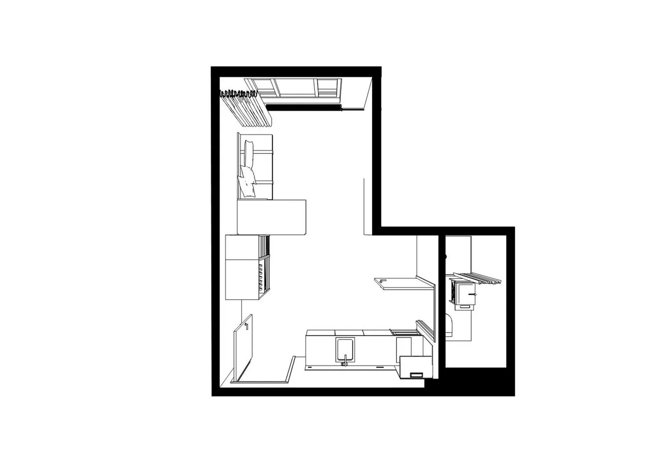 The studio is furnished with a double bed (), modern en-suite bathroom, luxurious open kitchen (incl. built-in appliances), large clothing & storage cupboard, desk with chair, lounge sofa and high-speed internet. The studio is located on the first floor (north side), with a view over the courtyard. See the floor plan for the units location in the building.