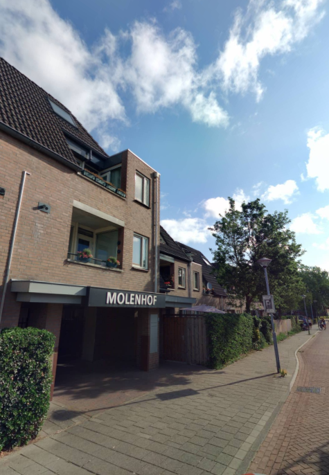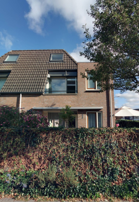 Deze hoekwoning ligt op de 1e en 2e verdieping van een complex in het Centrum van Veghel, naast de parkeerplaats van een supermarkt..