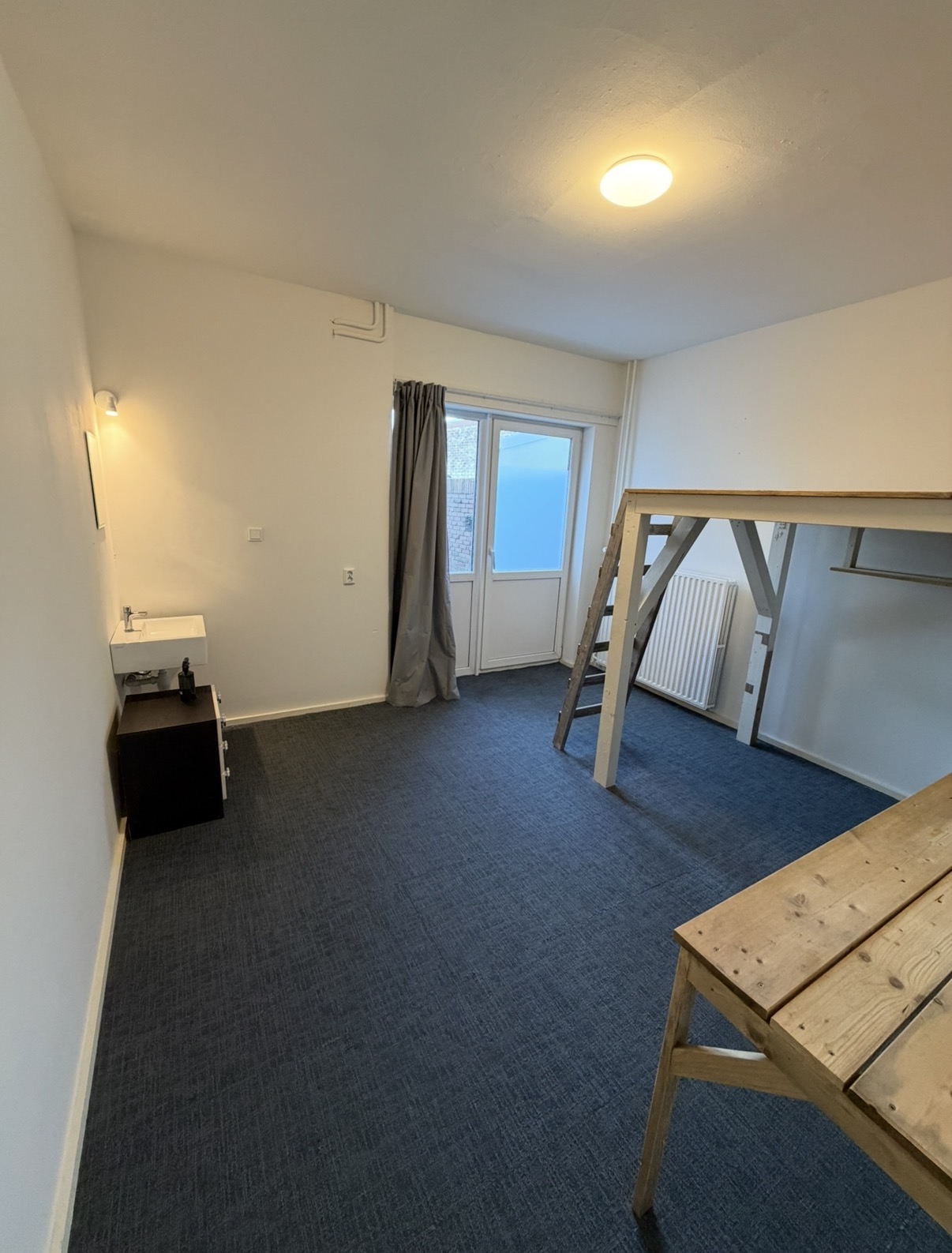 De kamer heeft een directe deur naar de tuin. Het is fijn rustig in huis..