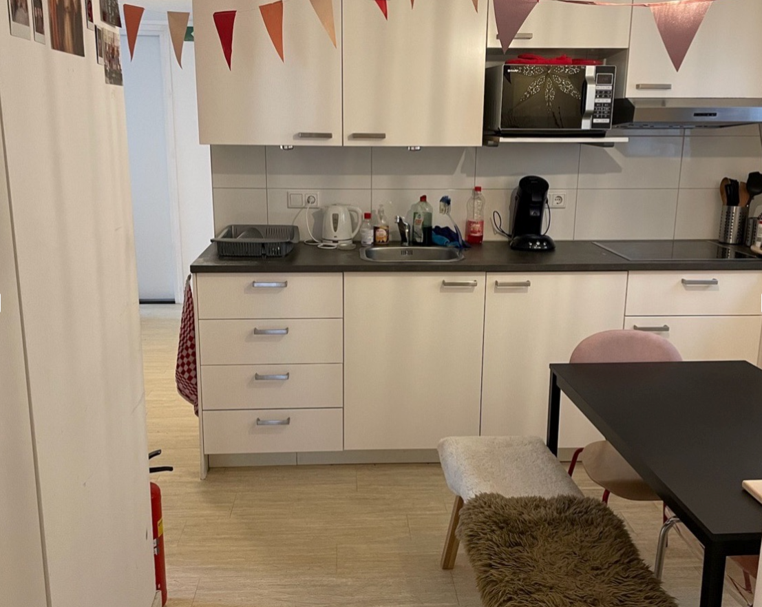 De kamer is +/- 13 m2 groot en je deelt de nieuwe keuken en badkamer met 4 mede studenten.