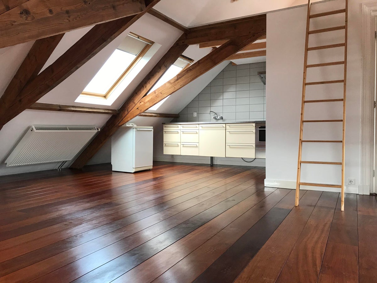 Te huur,luxueuze stijlvolle zolder-etage / studio,De etage is licht en heeft een mooi uitzicht.