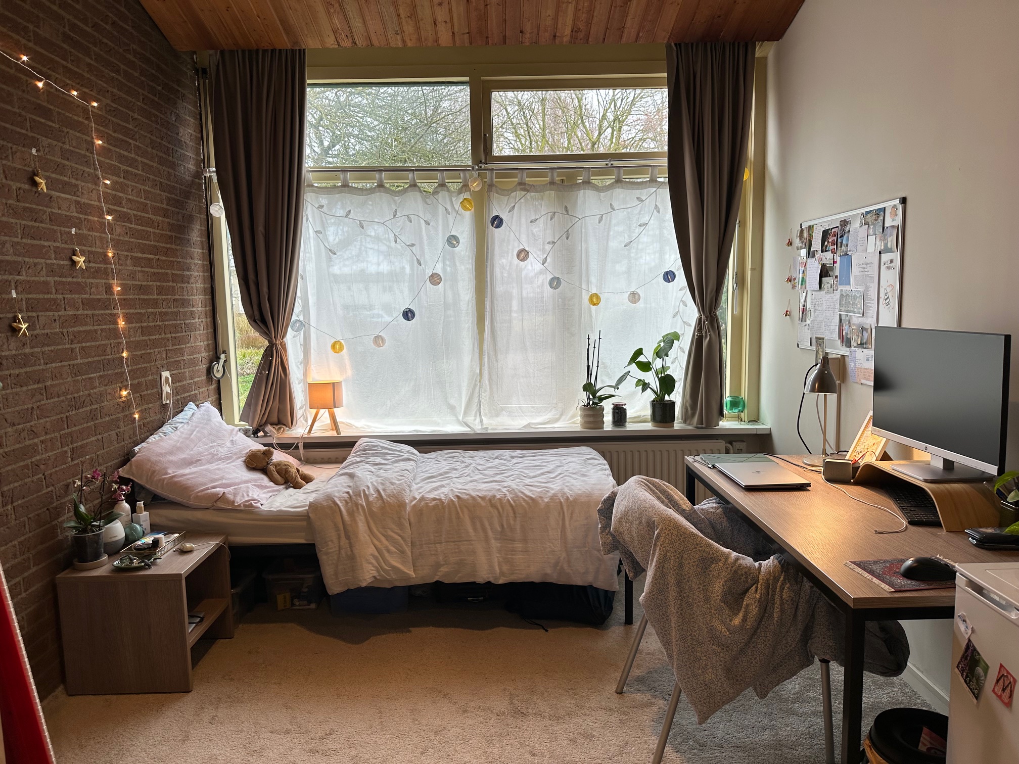 Room available from April - July 31st:FOR TU DELFT STUDENTS ONLY Location: Aan't Verlaat, Delft Duration: April - 31st July 2026 (inclusive) Price: 749 eur per month + a one-time 85 eur fee per room the the start of the rental period ️ Room: 19,5m2 with large windows TU Delft is located a 15 minute bike ride away Transportation: There is a bus stop 1 min away and a tram stop 10 mins away Utilities include Wi-fi accessMe and my housemate will be moving out of our rooms, so they will be available for sublet, through the rental agency.