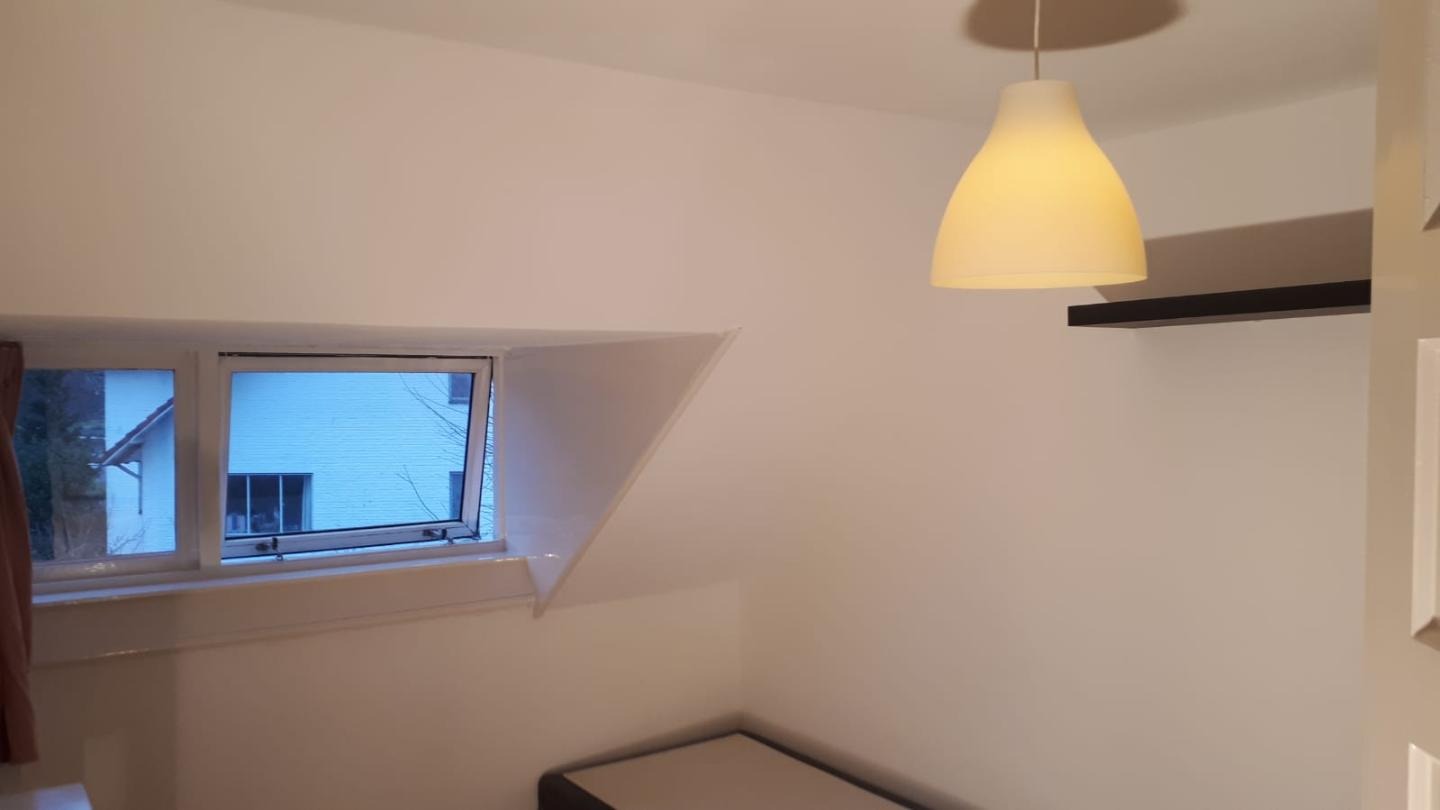 Te huur ruime lichte kamer op zolder etage in gezellig studentenhuis, gelegen in monumentale witte Dorp Eindhoven nabij centrum.