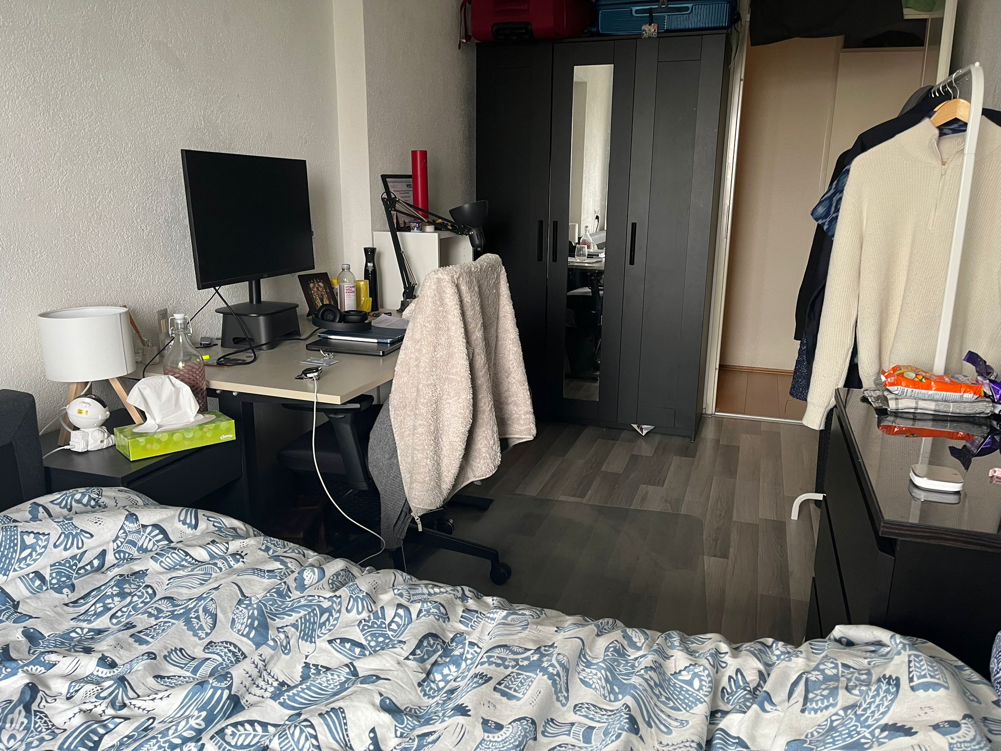 There's also a tram station (Opstelspoor De Esch) just a 3-minute walk from the apartment.Cleaning is taken seriously here. It is done weekly according to a schedule.Smoking is not allowed — neither inside nor on the balcony.The apartment is shared with Qiqi. He is a guy of Chinese descent and speaks Dutch, Chinese, and English.The room is available for rent starting on the 1st of April 2026 until 31st August, 2027. BRP Registration is possible Your room includes:-Bed with mattress-Wardrobe-Nightstand-Cabinet for personal itemsWe also have a storage room for the bike downstairs.If you're interested or have any questions, feel free to reach out.