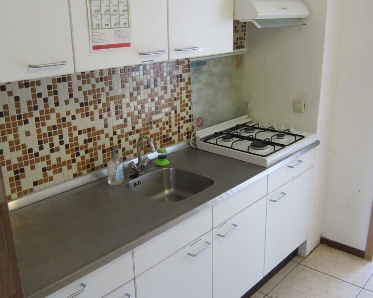 16 m²) op de tweede verdieping in een 2^1-kapwoning.De kamer is voorzien van internet- en tv-aansluiting. De kamerbewoner kan gebruik maken van een nette keuken, voorzien van spoelbak, gasfornuis, magnetron en koel/vrieskast, een separate toilet en badkamer met wasmachine. De woning is verder voorzien van een garage voor opslag van fietsen en een grote besloten zonnige tuin. De woning wordt gedeeld met nog 4 kamerbewoners.De woning ligt ideaal t.o.v.